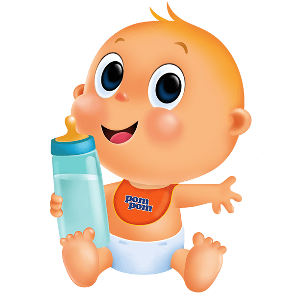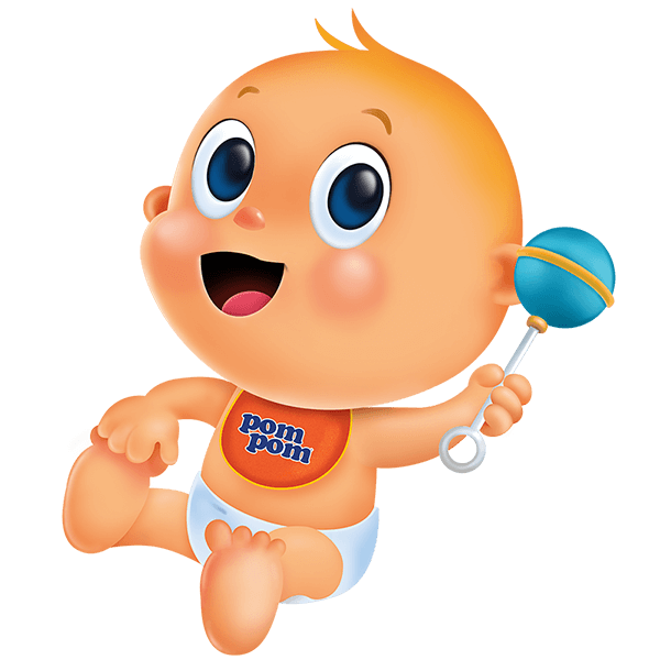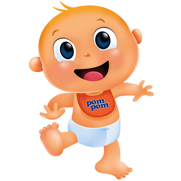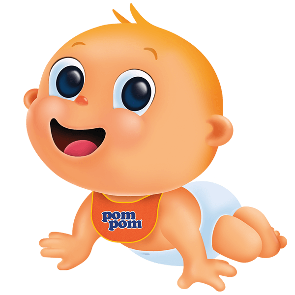 El bebé Pom Pom en posición de gateo representa a la talla “L” o la etapa “3”, en la cual un bebé pesa alrededor de 17 a 31 libras o se encuentra entre 9 a 12 meses de vida.